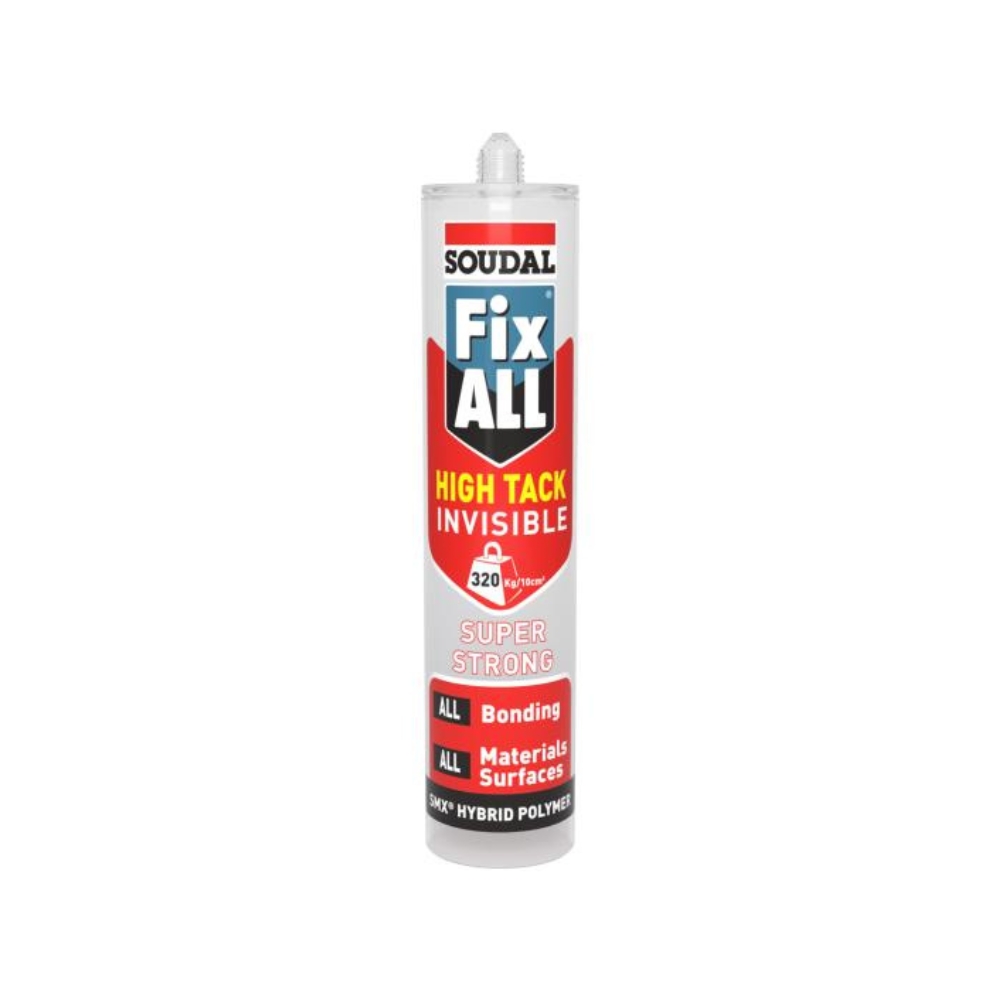 Super strong clear adhesive with high initial tack and end strength (320kg/10cm²). Based on SMX Polymer Technology, High Tack Invisible offers high performance flexible bonding of all types of materials onto almost any surface, both porous and non-porous, even if wet or humid.